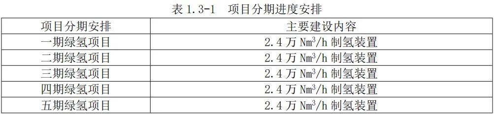 电解水制氢装置规划总规模为12万Nm³/h,分五期建设,其中一期2.4万Nm³/h电解水制氢装置与准东五彩湾80万吨/年煤制烯烃项目同时建设、同时投运。